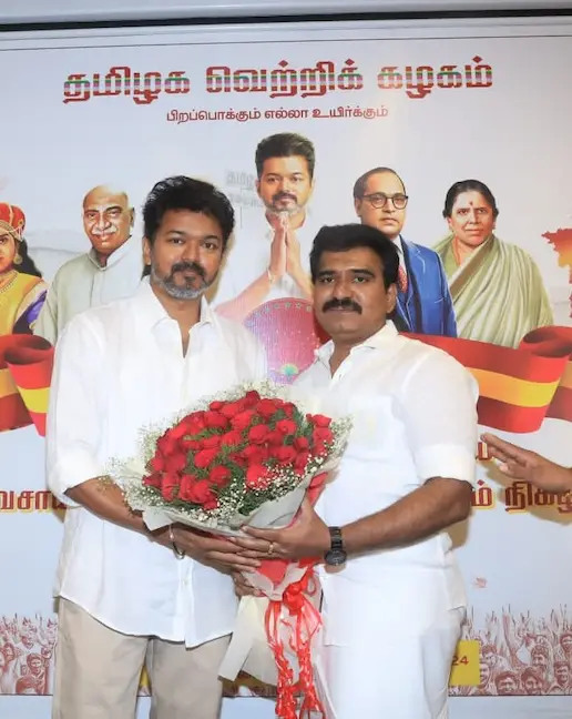 தமிழக வெற்றிக் கழகத்தின் (TVK) நிறுவனர் தளபதி விஜய் அவர்கள் சமூக நீதி, அரசியல் மாற்றம் மற்றும் தமிழக மக்கள் முன்னேற்றம் குறித்த ஆழ்ந்த நம்பிக்கையுடன் செயல்படும் ஒரு துருவ நட்சத்திரம். மக்களுக்கான சேவையில் அவருக்கு உள்ள அனுபவமும், ஊழல் இல்லாத, நவீன தமிழ்நாடு உருவாக்கும் முயற்சிகளும் அவருக்கு தமிழகத்தின் பல்வேறு தரப்பில் உள்ள மக்களின் மதிப்பு மற்றும் மரியாதையை பெற்றுத்தந்துள்ளன.